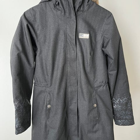 Naisten Helly Hansen -talvitakki. Koko S, lähempänä kokoa M. Kuvassa kokoa M käyttävän päällä. Säilytyksestä johtuen ryppyinen.