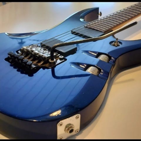Räyhäkkä sähkökitara seuraavalle kitaravirtuoosille! Kitaran kielet on hyvin säädetty ja soittotatsi on matala. Tallamikkinä on SD:n mikki, jonka malli on valitettavasti tuntematon. Body on uutta vastaavassa kunnossa, ei dingejä eikä osumia.