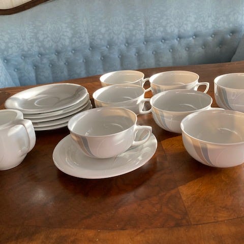 vintage Bavaria kahvikupit+ asetit 12 kpl 1980- luku, Winterling Schwarzenbach Germany Qualitas Porzelaine, katso myös saman sarjan teekupit