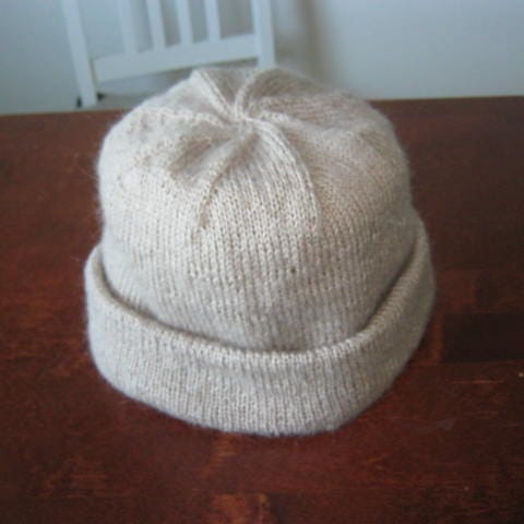 Rose-mohairlangasta kudottu pipo. Pään ymp. 56-58 cm. Väri tumma, punaisen sävyinen violetti. Toimituskulut 8,90€.