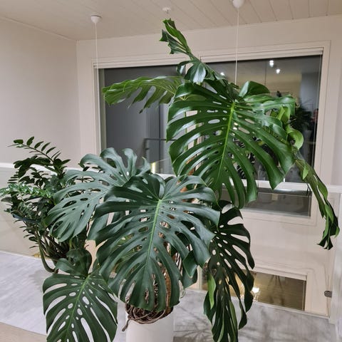 Myydään tilanpuutteen vuoksi iso ja komea värivirheellinen Monstera Aurea kasvi. Korkeus n. 100cm, 12 lehteä/niveltä. Kookossekoite-kasvupohja. Kauppaan kuuluu kasvi ruukkuineen ja tukikeppeineen.