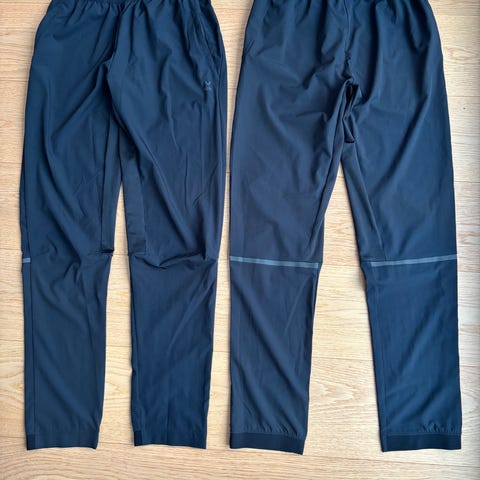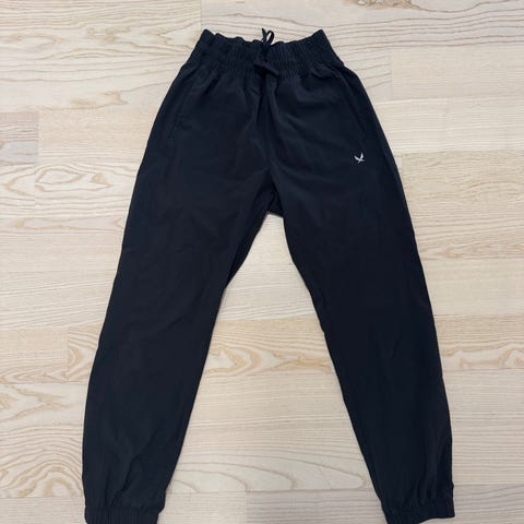 Kahdet mustat Soc-treenihousut, vyötäröllä kiristysnsuha, vetoketjutaskut ja lahkeissa myös vetoketjut. Koko 170, kuvassa toiset edestä ja toiset takaa