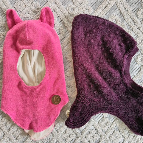 Manymonths 100% merinovilla kypärämyssy. Dinotupsut päälaella tosin saattaavat olla jotain huopaa, ainakin ne tuntuvat / näyttää siltä. Erittäin siisti kunto, en löydä kulumaa. Hauskan näköinen ja kuitenkin tupsut pään päällä pehmeät, joten toiminut esim kypärän alla erinomaisesti.