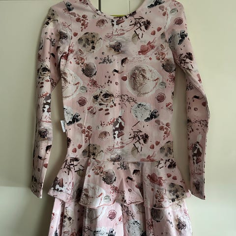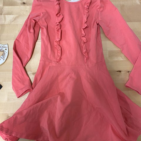Myydään lähinnä muutamassa juhlatilaisuudessa käytetty mekko, yhden lapsen pitämä. Väri enempi pinkki kuin vaaleanpunainen. Kunto hyvä, ei tahroja tai muuta huomautettavaa.