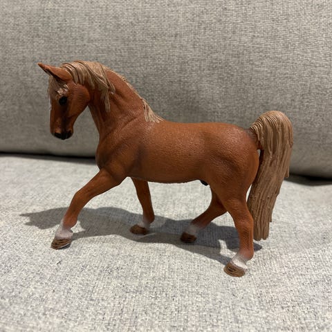 Kuvassa näkyvä vuoden 2007 tennessee walker Schleich-hevonen. Hyvässä kunnossa. Yhdessä kaviossa maalattu punainen pilkku.