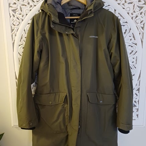 Didriksons pitkä naisten ulkoilutakki väriltään musta. Valmistettu polyamidista. Koko 42. Pitkä malli tarjoaa kattavan suojan ja mukavuutta erilaisiin sääolosuhteisiin. Veden pitävä. Vyötäröllä säätömahdollisuus. Vetoketjulliset sivutaskut. Kaulus ehjä ja siisti.