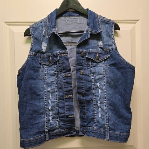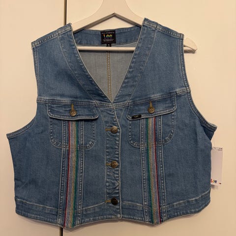 Gina Tricotin farkkuliivi, takana amerikanlippu