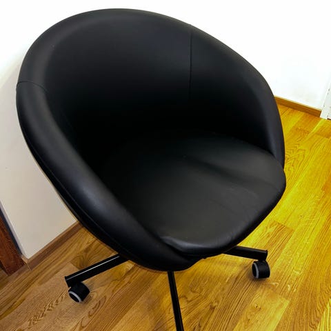 Myydään aktiivisessa käytössä ollut työtuoli, keinonahkainen, valkoinen väriltään. Tuoli imuroitu ja puhdistettu kostealla liinalla. Käytön jälkiä on, mutta hyvä kunto edelleen. Käyttöaika ja kunto huomioitu hinnassa, vain nouto.