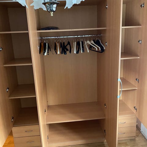 Valkoinen vaatekaappikokonaisuus, jossa kolme kaappia. Kaappien sisällöt näkyvät viimeisessä kuvassa. Siisti, ehjä ja hyväkuntoinen, toki pieniä käytönjälkiä löytyy. Meille ylimääräinen. Voidaan auttaa purkamisessa ja kantamisessa. Auton saa ajettua pihaan.