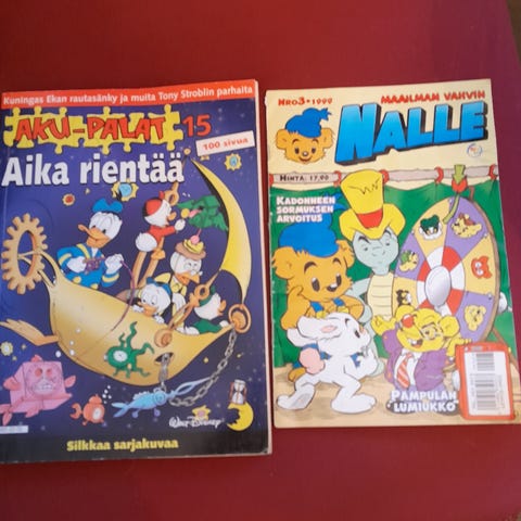 Aku-Palat sarjakuvakirjat, numerot 1 ja 15. Molemmissa 100 sivua. Hinta yht. 10 €.