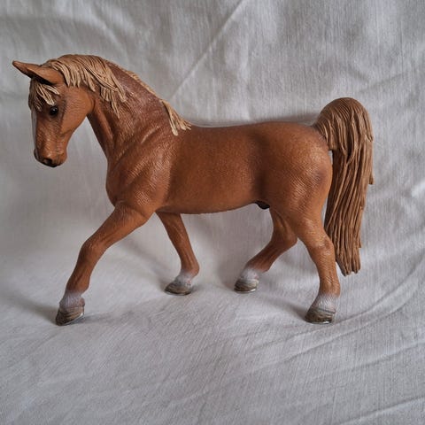 Kuvassa näkyvä vuoden 2004 Schleich lipizza tammavarsa. Hyvässä kunnossa, pientä kulumaa Yhdessä kaviossa maalattu punainen pilkku.