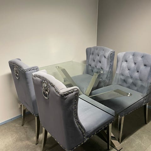 Todella tukeva maalaisromattinen ruokailuryhmä 4 tuolia ja pöytä. Jämäkät tuolit ja korkea selkänoja. Tukeva pöytä. Pestävät istuintyynyt. Nouto Lieksasta.