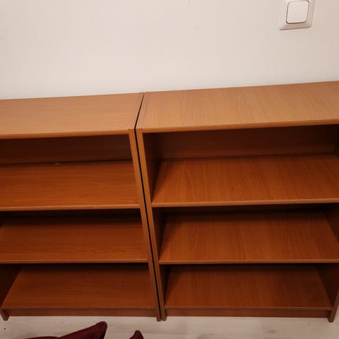 Myytävänä kaksi samanlaista valkoista kirjahyllyä. Hinta yhteensä 100 euroa, yksittäin 60 euroa.