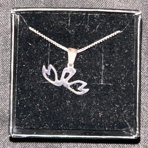Mikko Kuustosen Plan internationille suunnittelema koru mustalla pitkällä nyöririipuksella. Korun takana on kiinnitetty Plan kummilapsen itse keräämä kivi. Riipuksen halkaisija on 3,5cm.