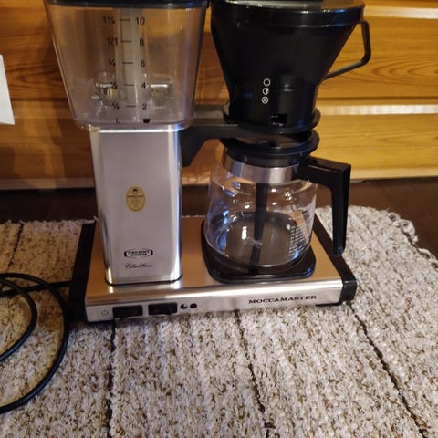 Hyvä toimiva moccamaster. Musta väritykseltään. Suodatinsuppilon kansi uupuu.