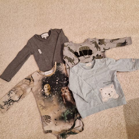 Edelleen ihan siistejä, vaikka jo enemmän käytettyjä. Huomioitu hinnassa. Koot vaihtelee (jopa 80cm), mutta nämä ollut aikalailla yhtä aikaa käytössä 68-74 vaiheessa.