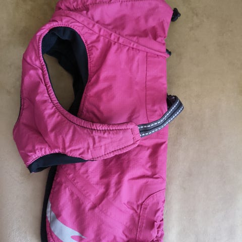 Hyväkuntoinen pikkukoiran vaate. Pupukuviolla. Vetoketju mahan puolella. Vaatteen koko pituus n. 28 cm. Ollut noin 3 kg chihuahualla. Sopii parhaiten noin 2,5-3,5 kg koiralle.