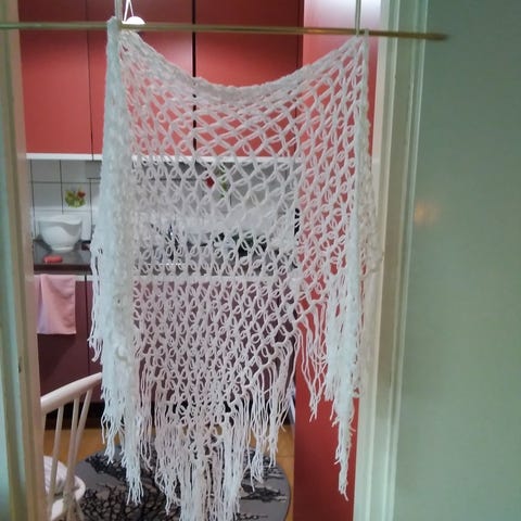 Joulunpunainen suuri virkattu huivi. Lämmin. Ei sisällä villaa. Pesu 30 asteessa