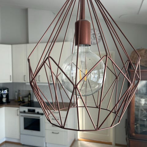 Kaunis valkoinen helmilamppu. Leveys ja korkeus n. 35 cm.