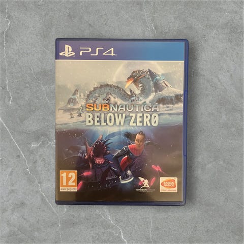 Playstation 4 Subnautica Below Zero peli. Ikäsuositus 12+, sisältää vedenalaisen tutkimus- ja selviytymisteemoja.