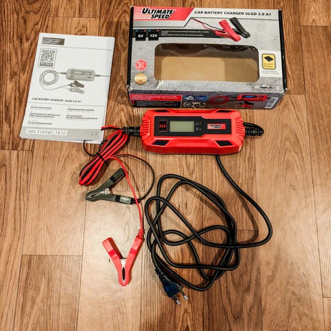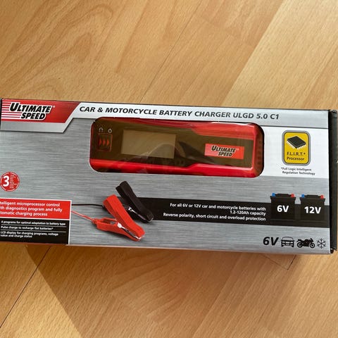 Alligator AK 8126 akunlaturi, joka soveltuu 6 ja 12 voltin akuille. Laturi tarjoaa 6 ampeerin latausvirran. Laite on varustettu merkkivaloilla ja kiinnitysklipsuilla.