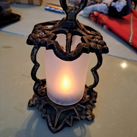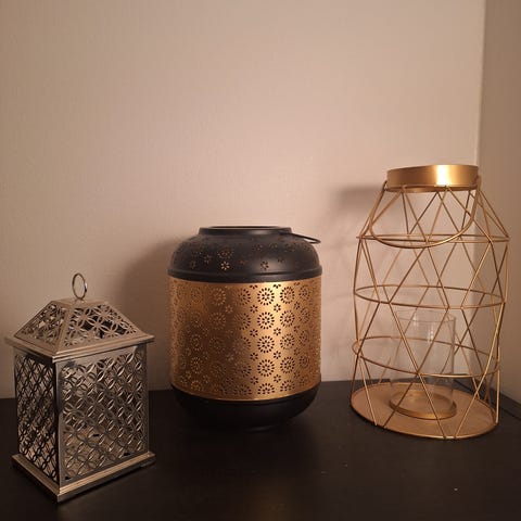 Kaksi lasista kynttilälyhtyä