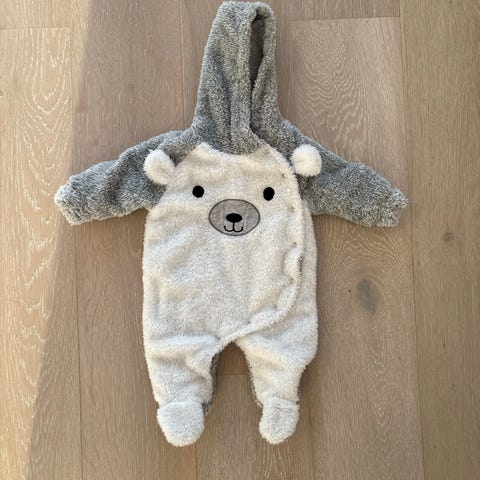 Vauvan pörröhaalari, koko noin 50/56. Hupussa pienet korvat, jaloissa nallen kuva ja korvat. Hinta 2 e. Koiratalous.