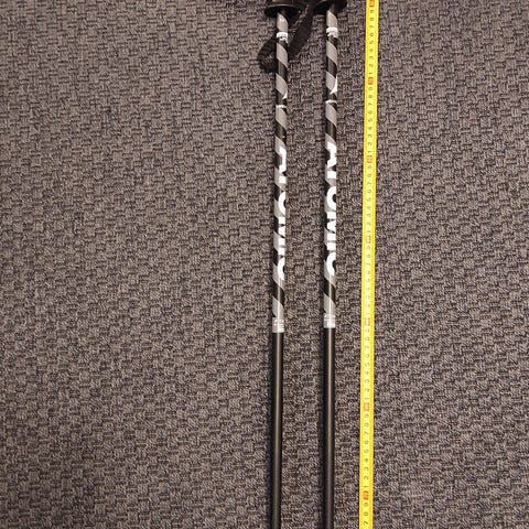 Atomic Proskin 9 Classic hiihtosauvat, mustat kahvat ja vaaleat varret, sopivat perinteiseen hiihtotyyliin. Sauvojen materiaali ja koko eivät ole tiedossa.