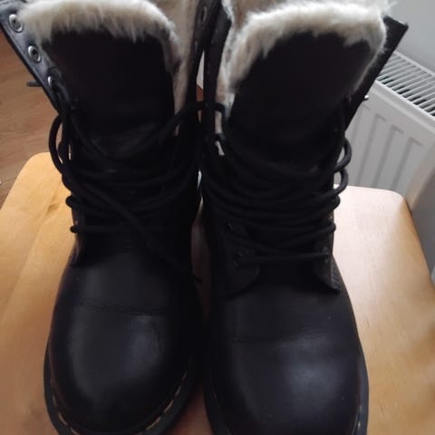 Dr. Martens Jadon Faux fur lined platform-maiharit, turkisvuoratut. Koko 39. Käytetty kaksi kertaa, putsattu ja kahdesti hoidettu Dr. Martens nahkabalsamilla. Minulle hieman liian suuret (ajattelin että menisi villasukan ja pohjallisen kanssa mutta nämä on niin lämpimät ettei edes tarvitse täytettä.