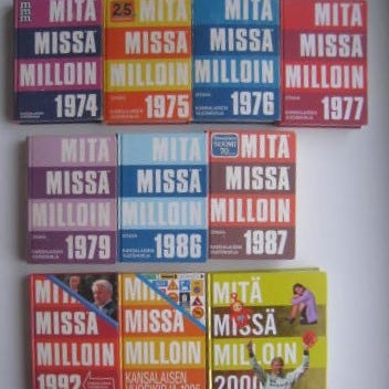 Mitä missä milloin -kirjat vuosilta 1991 ja 1995. Siistikuntoiset. Hinta/kpl. (Nouto tai postituskulut lisätään hintaan).