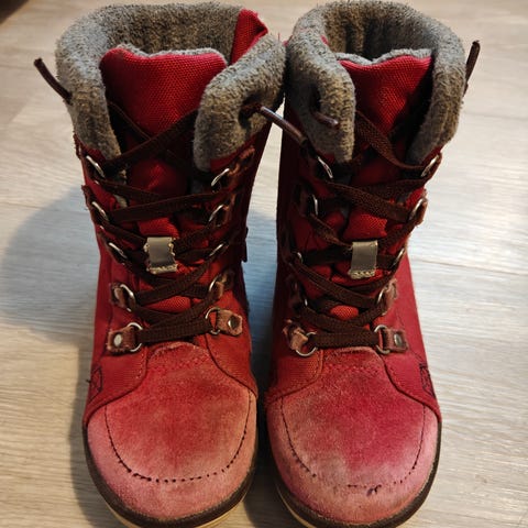Parin lapsen käyttämät mutta mielestäni vielä käyttökelpoiset. Toisessa kengässä alin nauhojen kiinnityslenkki irronnut. Kengännauhat joustavaa materiaalia ja jousto taitaa olla osin väsynyt mutta ei vielä kokonaan poissa.
