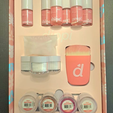 Dippi manikyyrisetti, kuusi väriä +kirkas jauhe. Kaupan päälle rakennkynnet. Kaksi manikyyri tehty eli kaikista pulloista jäljellä noin 80%. Tilattu noin 2 kk sitten eli kaikki hyvässä kunnossa.
