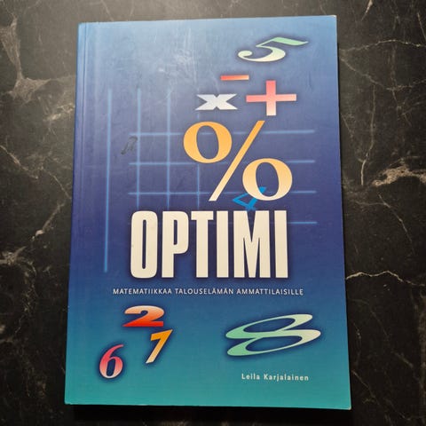 Matematiikkaa talouselämän ammattilaiselle. Esim tradenomi opiskelijalle. Leila Karjalainen, 5. Painos. Lyijykynällä tehty pikkusen muistiinpanoja.