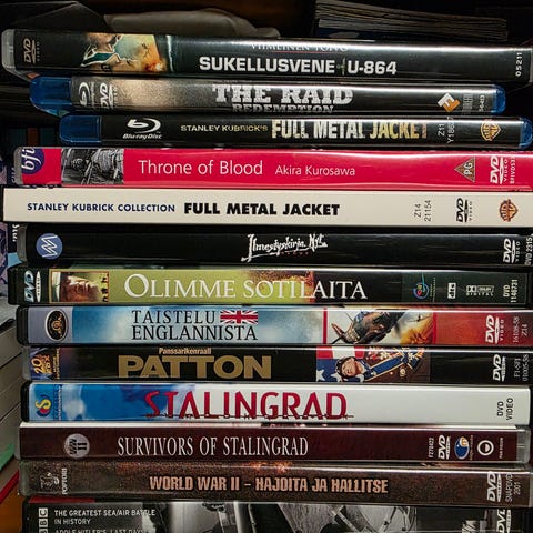 Myytävänä kuvien leffat, hentoja jälkiä Rukajärven tiessä ja sormenjälkiä saattaa olla myös muissa, kotelot hyvässä kunnossa.