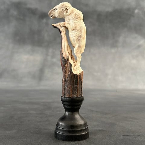 Kaiverrus, Stunning Wolf Head carving from deer antler on custom stand - 18 cm