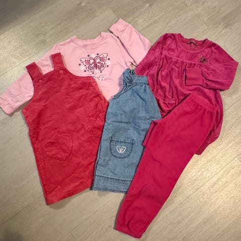 Hyväkuntoinen vaatepaketti tytölle, leggarit+paita Peuhu, Nosh hame 98/104 (vastaa kokoa 110cm), juhlavampi puolihame Kids Up 104cm, myös reilu koko eli koko setti menee lapselle saman koon aikaan :-).