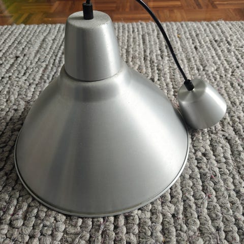Moderni ja tyylikäs metallinen riippuvalaisin. Siro riippuvalaisin sopii pieneenkin tilaan. Max 60 wattia. 220-240 V. 50/60Hz. Halkaisija 31 cm, pituus 36 cm. Siisti, ollut vain hetken käytössä.