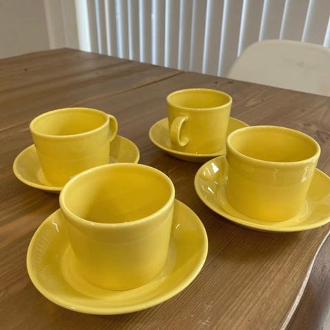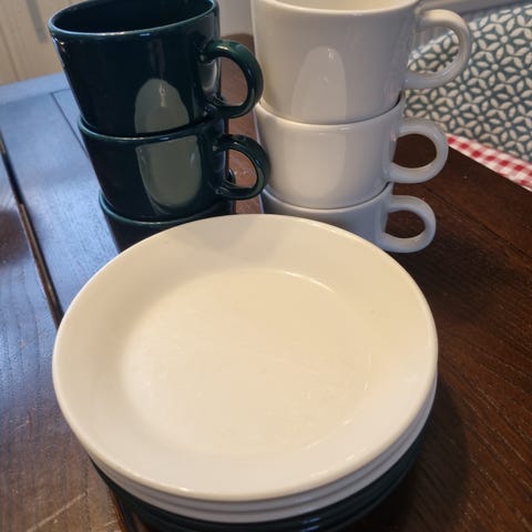 Myydään vanhat ja oikein hyvässä kunnossa olevat arabian teema-sarjan kahvikupit ja lautaset. Väri on valkoinen. Kahvikuppien vetoisuus n. 1dl, halkaisija n. 7,3cm. Lautasten halkaisija n. 12,5cm. Kuppi- ja lautaspareja yhteensä 8kpl. Kaikkien pohjassa on arabian leima.
