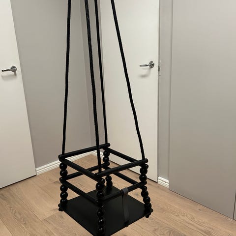 Done by deer merkkinen musta puinen vauvan keinu. Siistissä kunnossa, minimaalista kulumaa maalissa paikkapaikoin.
