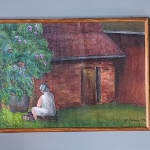 Eero Nokelaisen taulu vuodelta 1983. Taulu kuvaa Oy Viktor Ek Ab:n varastorakennusta Katajanokalla.