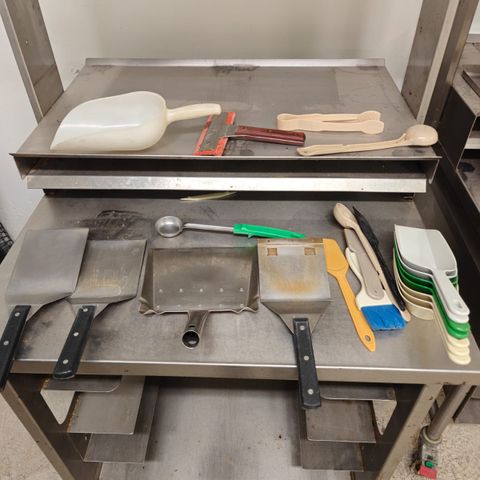 RST-tasovaunu kahdella laatikolla ja jarrupyörillä. Ollut tarjoilu käytössä. Mitat 100 x 55, korkeus 81.