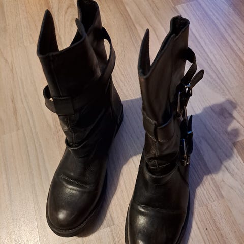 Vain muutamia kertoja käytetyt Steve Madden nahkaiset saappaat. Takaosan vetoketjusta voi säätää varren leveyttä. Mukava lesti, vastaa kokoaan.