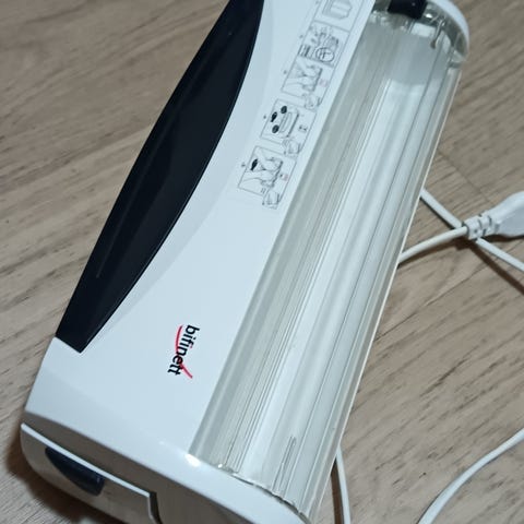 Vähälle käytölle jäänyt tehokas lämmitin, lämmittimestä oma termostaatti.
