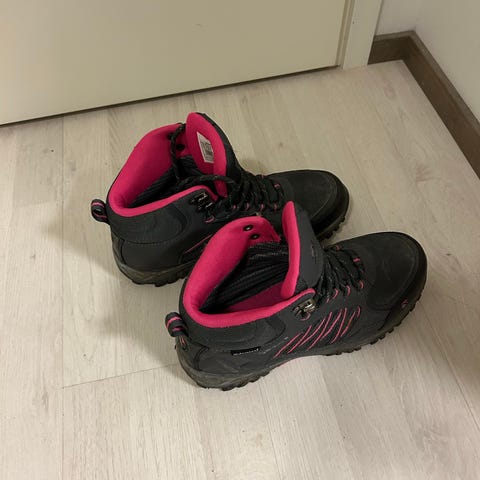 Nahkaiset vaellus-/retkeilykengät hyvässä käytetyssä kunnossa. Tukevat ja mukavat kengät, joissa on pitävä ja kestävä pohja – sopivat erinomaisesti kävelyyn ja ulkoiluun. Kengissä on normaalia käytön jälkeä (katso kuvat). Sopivat jalkaan noin koossa 37–38.