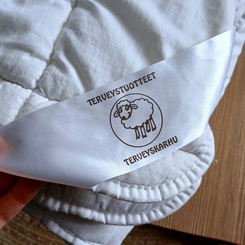 Käyttämätön villaviltti. Lapussa lukee Postnord, mutta senhän voi vaikka leikata pois. Avasin pussia sen verran että sain kuviosta kuvan ja mitat otettua. Väri vaalean beige tummemmalla kuviolla, toisella puolella päinvastoin. Mitat 90x130 cm.