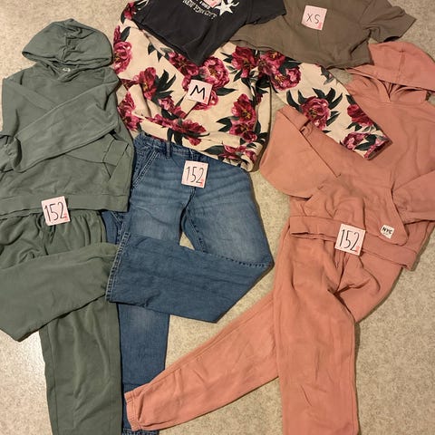 Tyttöjen vaatteet 152. Jotkut vaatteista ovat oversized, mutta mennyt hyvin 152 kokoiselle.