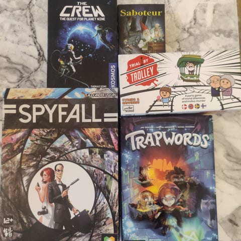 Kuusi pientä korttipelit kiertoon. Kunto hyvä / kohtalainen laatikoiden osalta. Kaikki osat tallella.