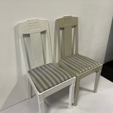 Tuo menneisyyden charmia sisustukseesi tämän upean antikvariaattisen ruotsalaiskalusteen avulla! Nämä ainutlaatuiset tuolit on huolellisesti valmistettu ja heijastavat skandinaavisen muotoilun hienostunutta yksinkertaisuutta. Yksityiskohtainen puuntyöstö ja nahkainen istuin tekevät niistä täydelliset ruokailutuolit tai tunnelmallinen lisä jokaiseen huoneeseen.