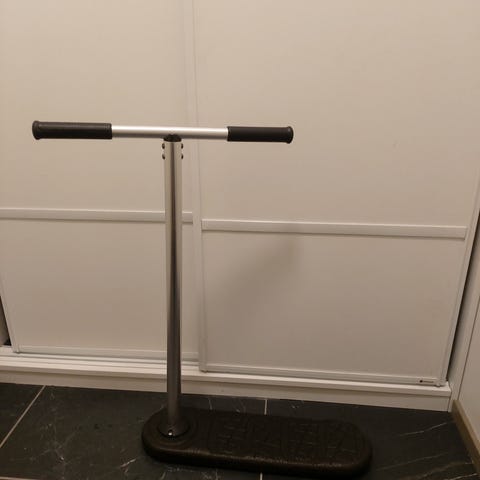 Sininen trampoliini skuutti tangossa on tarroja ja kannattaa kiristää tankoa