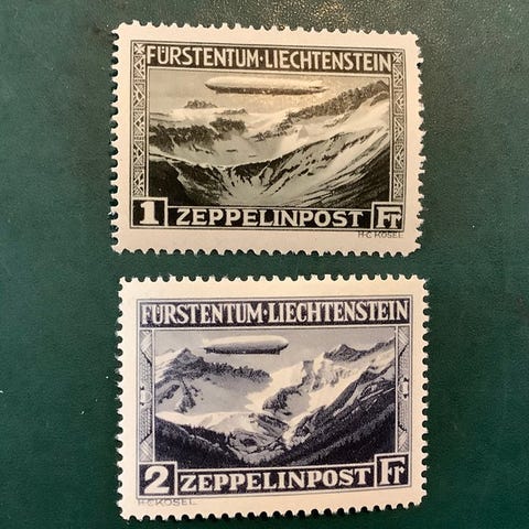 Saksan valtakunta 1928 - Zeppelin: 2 ja 4 Mark - Michel 423/424